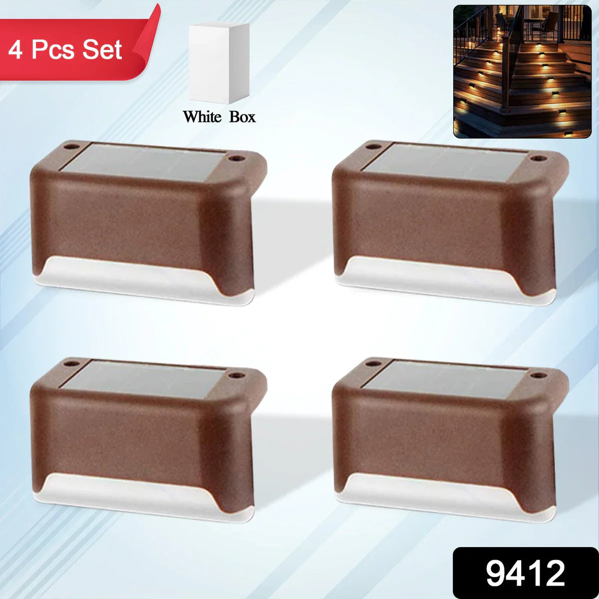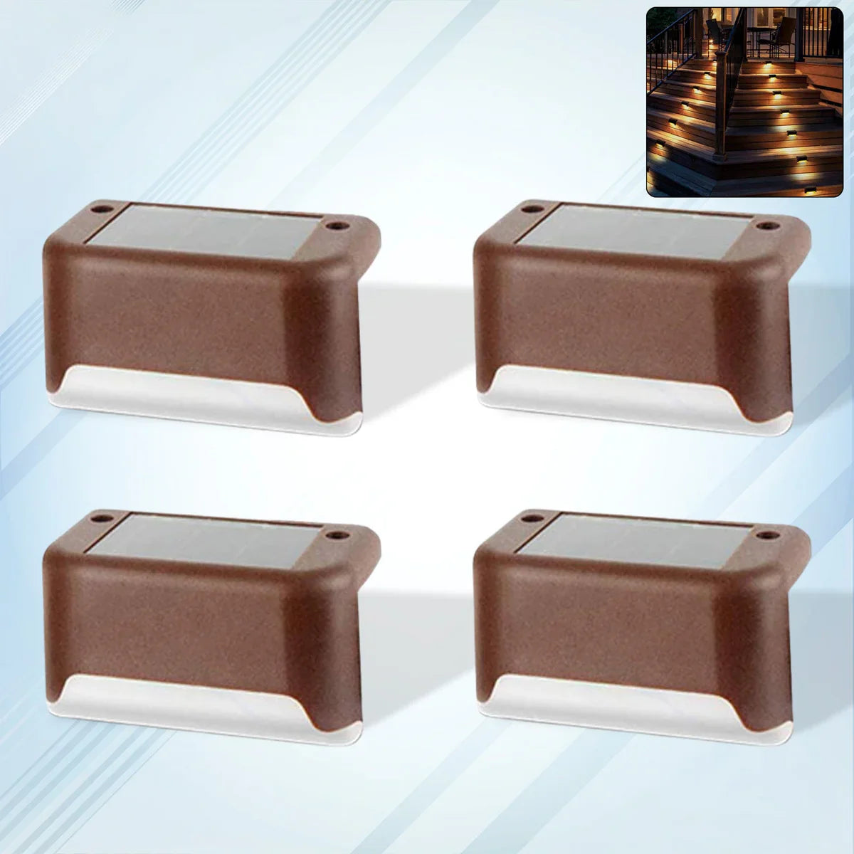 Solar Decorative Lights, Waterproof Durable Garden Atmosphere Lights Stair Lights Railing Lights Step Steps Lights for Outdoor Patio Courtyard Stair Step Fence Patio Stairs, Yard, Garden Pathway (4 Pc Set)